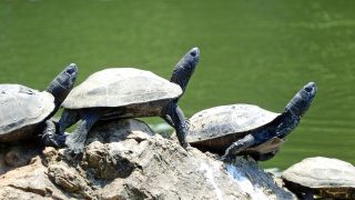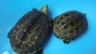 クサガメはタニシ等の貝類が大好物で、匂いで分かるらしくバケツに入れていたタニシを水洗いしていたらゾロゾロと集結してきたので早速与えてみました。バキッバキッと噛み潰して食べる個体や噛み砕けない個体は丸飲みしたりします。レギュラーサイズの小さい...
