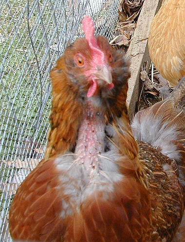 良く見ると雌鶏の脚に血の跡があるじゃないですか。怪我をしているのかと思ってチェックしたのですが怪我はないし、どうもダニに吸血されてあまりの痒さに起きてきたみたいでした。