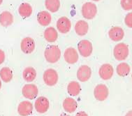 生鮮標本では虫体は赤血球内の空胞のようにみえます。