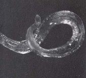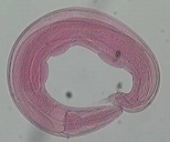 肺毛細線虫:キャピラリア・エロフィラ(Capillaria aerophila)、雄15~25mm、雌20~40mm、虫卵は58~79 x 29~40㎛
