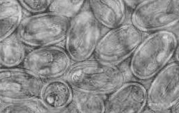 美麗食道虫(ゴンギロネーマ・パルクラム:Gongylonema pulchrum)、雄30~62mm、雌80~145mm、体の前部の表面に数列の縦走するクチクラのまるい突出物の列と、左右に頸翼があります。