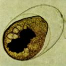 虫卵は類円形で、色は薄く、75~95 x 60~75㎛、蛋白膜があり内容は単細胞です。主に6ヶ月齢以下の牛、水牛の小腸に寄生し、世界各地に分布します。