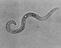 犬糸状虫:ディロフィラリア・イミティス(Dirofilaria immitis)、雄12~18(平均17.2)cm、雌25~30(平均27.8)cm、乳白色で素麵状です。体の前端はドーム状で鈍円となり、小さい乳頭が4対あります。雄の尾部はゆるく螺旋状に巻いています。