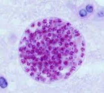 赤血球内の成熟シゾントは20~36個のメロゾイトを形成します。