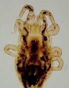 フタトゲチマダニ(Haemaphysalis longicornis)、Haemaphysalis属のマダニは色が黄褐色ないし茶褐色、眼はなく、花彩をもつ