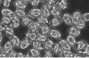 自然界では多くの感染動物は不顕性感染の状態で維持しますが、宿主が重要な疾病に罹患して抵抗力や免疫状態が低下すると、組織のブラディゾイトは活性化し、タキゾイトとなって増殖しトキソプラズマ症を発症します。