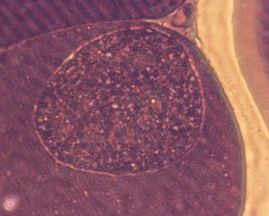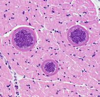 宿主が健康で、感染後に速やかに免疫状態を獲得すれば、多くは原虫の体組織における増殖は抑制され、組織(主として筋肉、脳)にシストを形成してブラディゾイトの状態で存在するようになり、不顕性感染の状態が維持されます。