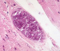 B.bovisに原因する本症の症状も黄疸、貧血、血色素尿を特徴としますが、特に中枢神経障害による症状を認めることが多い。その原因は、脳毛細管に原虫寄生の赤血球が凝集し集積する結果です。