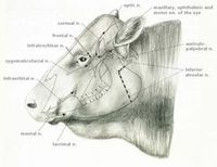牛、羊の角は洞角cavicornと呼ばれる。前頭骨の角突起proc. cornualisを中心として、皮膚の表皮の角質層が角質化した角鞘horn sheathで包まれ、角底basis cornus、角体corpus cornusおよび角尖apex cornusに区分されます。