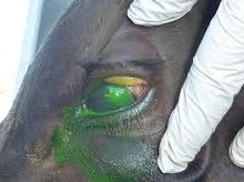 強角膜境界部が著しく拡大するのが特徴で、前房はむしろ深く、虹彩は多少萎縮し、瞳孔は縮小ないし正常です。角膜の乾燥によるさまざまの障害が現れる。
