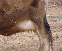病性はふつう急性または甚急性が特徴的です。乳房の腫脹が著しく、浮腫と疼痛があり、乳量は急減し、少量の水様分泌物のなかに細粒状の塊片や血液を混じる。