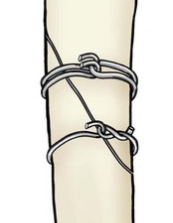 輪の部分は、肢の付根の外周よりもかなり余裕のある大きさとし、円筒状の木、金属などの型を使って、楕円形につくり、腋下または鼠径部にあたる所には、下敷として綿、フェルト、発泡スチロールなどを巻いて絆創膏で止める。