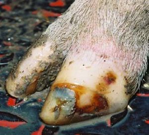 趾間皮膚炎に継発すると考えられています。また本病が蹄底潰瘍の原因になっているという考えもあります。
