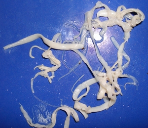 これらの寄生虫は鳥の卵管内に寄生し、体長7~9mmまで成長します。鶏の卵管組織を損傷して炎症を引き起こし、腹膜炎や感染を悪化させる細菌の二次感染を引き起こすため、鶏に重度の感染症を引き起こすことがあります。