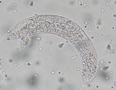 ハエ馬胃虫(ハブロネーマ・ムスカエ:Habronema muscae)、雄8~14mm、雌13~22mm、虫体は帯黄色ないしオレンジ色をしています。体に左側だけに頸翼があります。虫卵は殻が薄く、40~50 x 10~12㎛で幼虫を含む。糞中...