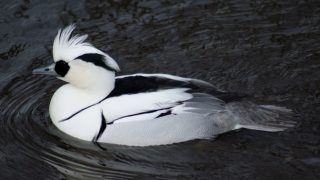 カモ類 ミコアイサ Smew アイサ類の最も小形のもので、非常に美しく良い鳥ですが、中々得がたいでしょう。森林によって囲まれた湖とか、河などで繁殖するのですが、冬季は主として日本の北海道へも飛来します。北方は開放のツンドラ地帯迄と、南方はシベリヤの森林限界迄繁殖します。... 2017.10.22 カモ類