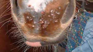 白癬は、円形の脱毛部、鱗屑、痂皮形成を生じることが特徴です。馬の体のどこにでも発生する可能性がありますが、顔、下肢、胴回り、肩、胸部に発生することが多いです。
