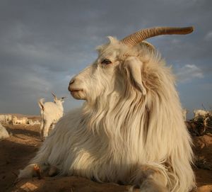 螺旋角ヤギ(Spiral-horned goat)ともいわれます。背と顎に黄褐色の長い剛毛があります。