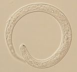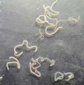 クーパー毛様線虫:クーペリア・クルチセイ(Cooperia curticei)、Cooperia属の線虫は小形で、赤味を帯びる。
