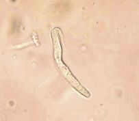 虫卵は75~120 x 40~85㎛で、楕円形ですが虫卵は肺で孵化し、糞便中には1期幼虫(340~400 x 19~20㎛)としてみられます。