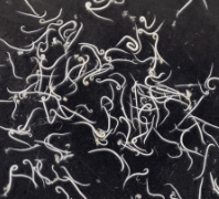 犬肺虫 ~ 犬の肺実質に寄生し、小結節を形成します