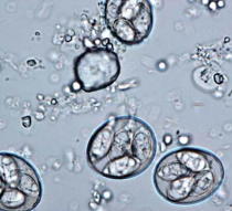 オーシストは亜球形、卵円形、類楕円形で、12~23 x 10~19㎛