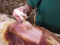 b)浸出:心・腎・門脈系の障害に伴って循環障害がおこると、腹膜腔内への滲出が増し、濾出液(transudationあるいは腹水)が貯留する。