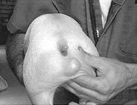 c)ヘルニア嚢hernial sack:壁側腹膜がヘルニア門から嚢状に膨出したもので、なかに種々の内容をいれる。外表は皮膚、内側は壁側腹膜であって、部位によりその間に皮下組織、筋層、筋膜、脂肪組織などが加わって形成される。