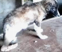 患犬は、多飲、多食、多尿を特徴とし、腹部膨満(腹腔の脂肪沈着、脂肪肝)や筋萎縮を伴うため動作が不活発です。