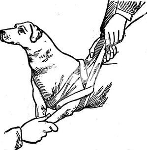 一般的処置は、他の脱臼の場合と同様で、整復後、ギプス包帯などで固定し、患畜を安静にします。