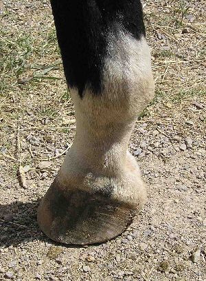 一般に繋と蹄の異常運動、および重度の支跛がみられます。