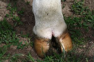 蹄癌が蹄叉から蹄踵に蔓延する場合は、左右の蹄踵が離開して、負面の最大横径が増大します。一般に、蹄病に罹患すると蹄踵は狭窄するものですが、本症のみは離開する特徴があります。