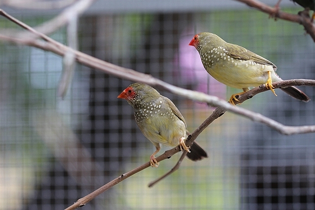 止まり木は1本または2本設置します。餌と水は巣台の下の棚に置きます。又、青菜とボレー粉は前面の金網に掛けてやり、底には砂を薄く敷いてやります。