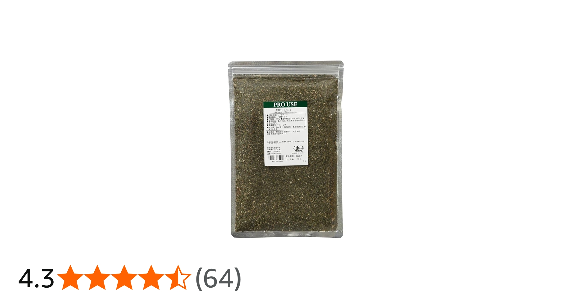 商品説明「生活の木 有機ハーブ ネトル茶 100g」は、有機栽培のネトルを使用したハーブティーです。化学的に合成された農薬や肥料を使わず、地球にやさしい環境で栽培され、有機農作物の日本農林規格(有機JAS)に合格したハーブを使用。ネトルは、...