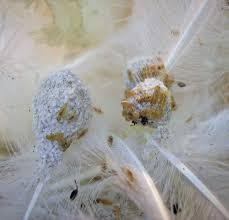 ミナミトリサシダニのライフサイクル:メスのミナミトリサシダニは、宿主の羽毛、または近くの営巣材料に産卵します。