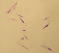 猫イソスポラ(Isospora felis)オーシストの形態は犬に寄生するI.canisに酷似していますが、鋭端がやや突出しています。オーシストは卵円形、おおきさは32~53 x 26~43(平均42.5 x 32)㎛壁は平滑で色は淡黄色な...