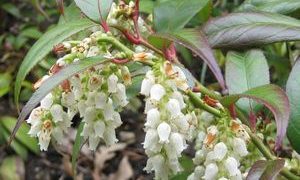 イワナンテン属(レウコトエ属:Leucothoe spp.)は常緑または落葉の低木で、日本では昭和40年代頃から少しずつ庭木として利用されはじめ、公園等でもみかけます。白またはピンクの壷形の花を垂直に咲かせます。セイヨウイワナンテンの葉は有...