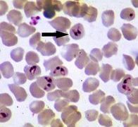 多型バベシア(Babesia divergens)、小形のBebesia属原虫で、形態学的にB.bovisに似ていますが、洋ナシ状虫体はこれよりすこし小さく(1.5 x 0.4㎛)、赤血球の周縁部に寄生します。対をなす洋なし状虫体のなす角度...