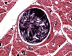 サルコシスティス・ミシェリアナ ~ 終宿主は犬のほかオオカミ、アカギツネで、その小腸絨毛の上皮下組織に寄生