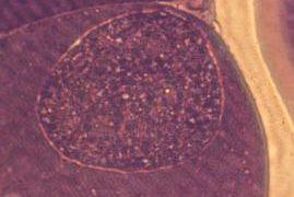 ハモンディア・ハモンディ ~ 寄生部位は猫では小腸の絨毛上皮細胞、中間宿主では横紋筋のほか脾臓、肝臓、肺、腸間膜リンパ節