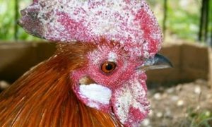 白癬 ~ 鶏冠や肉垂に白い粉状の斑点としわのある痂皮を形成します