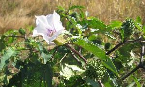 シロバナヨウシュチョウセンアサガオ (ダチュラ・ストラモ二ウム:Datura stramonium)は、ナス科チョウセンアサガオ属の一年草で、しばしばソーンアップル(棘のリンゴ)とも呼ばれます。シロバナヨウシュチョウセンアサガオの葉は柔らか...
